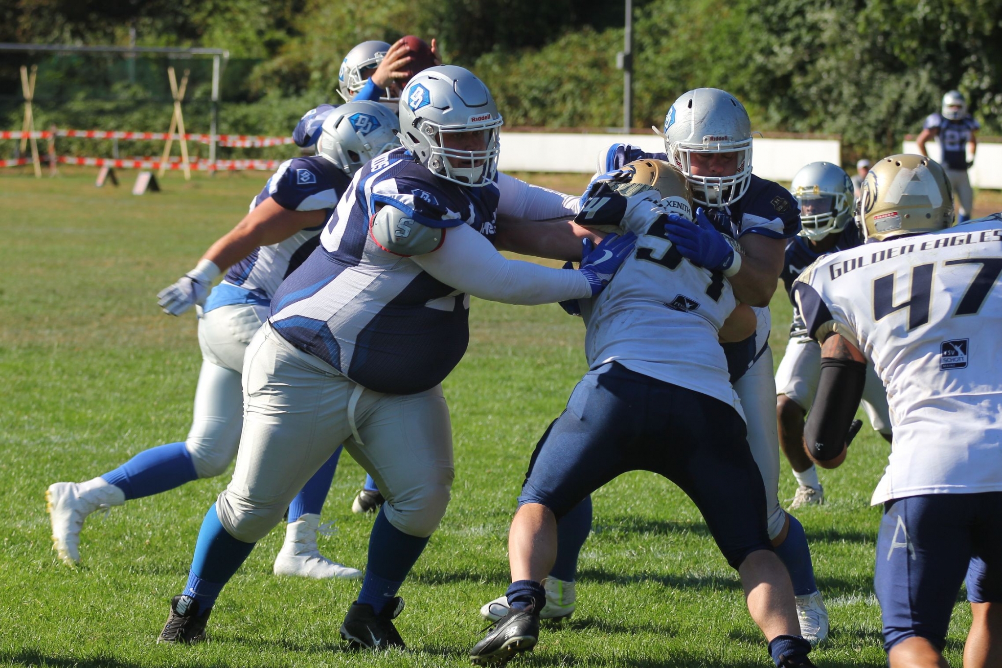In der zweiten Hälfte kamen die Golden Eagles besser ins Spiel. Sie kamen auf 12:14 heran, aber die 2-Point-Conversion klappte nicht. Genau sowenig wie der anschließende Onsidekick. Aber die Eagles gaben nicht auf und kamen nach einem Touchdown der Diamonds mit einem Defense-Touchdown wieder ran. Aber am Ende brachte die Diamonds das Spiel verdient nach Hause und können mit einem Sieg gegen Trier nächste Woche die Meisterschaft perfekt machen.