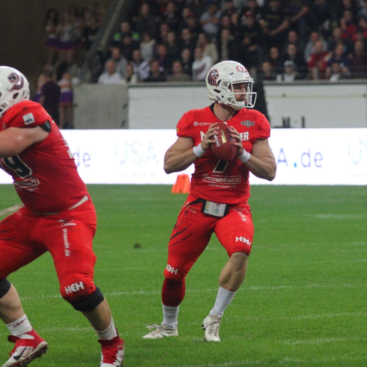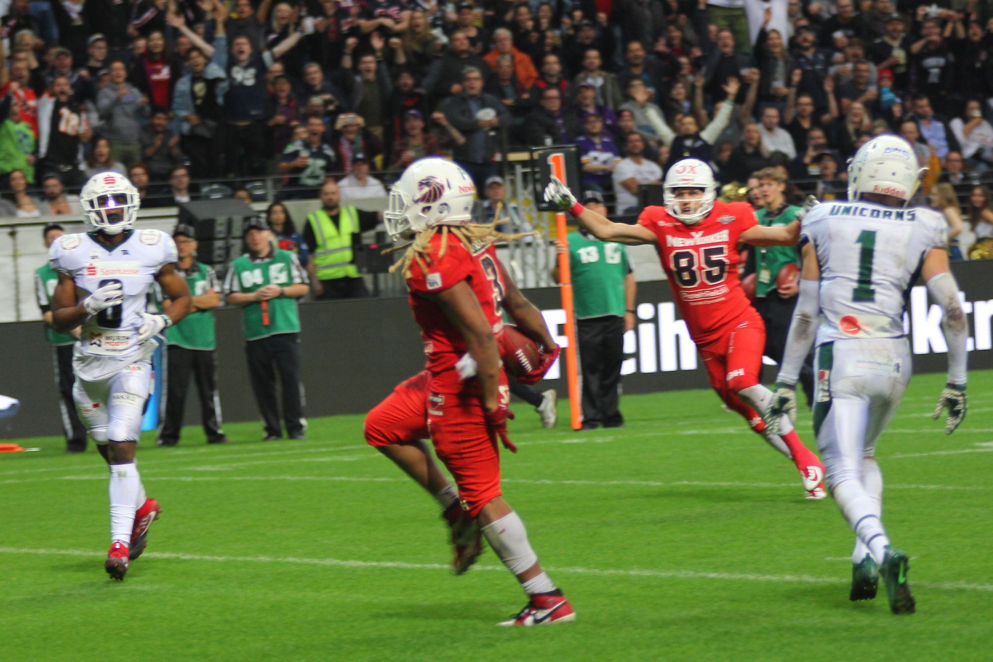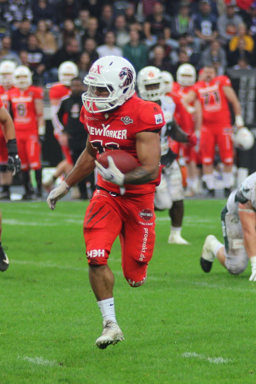 Mit 10:7 (0;0,0:0,10:0,0:7) gewinnen die Braunschweig New Yorker Lions den German Bowl XLI.