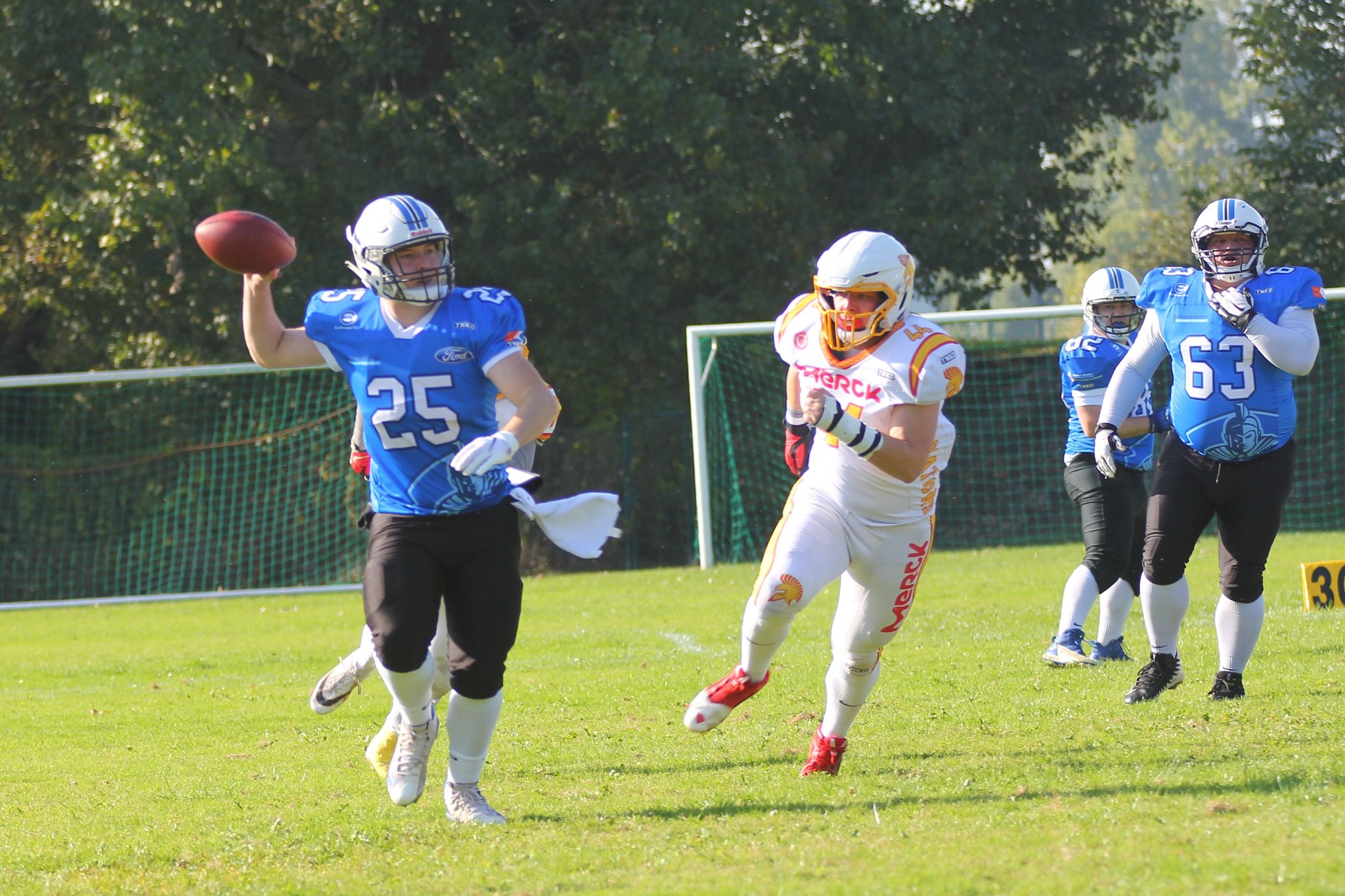 Einen Tag nach dem SharkWater German Bow XLI könnte der Kontrast kaum größer sein was Stadion, Rasen und Mannschaften betraf. Aber so kann man sich täuschen: Vor ansehnlicher Kulisse überzeugten beide Teams mit engagiertem Football und begeisterten die Zuschauer.