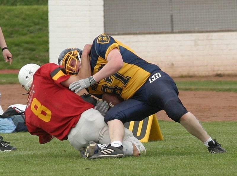 Die ersten Punkte der Liga blieben den Mannebach Black Guardians vorbehalten. Die Spielgemeinschaft zwischen den Mannebach Black Goats haben sich mit den Siegen Guardians verstärkt für ihren ersten Auftritt. Die 2 Point Conversion war gut und so führte Mannebach mit 8:0. Da platzte auch der Knoten bei den Titans und sie konnten mit einem langen Pass auf 8:6 verkürzen. Allerdings machte sich im Laufe des Spiels auch die schwindenden Kräfte bei Kassel bemerkbar. Lange Zeit konnte man die eigene Endzone in der zweiten Halbzeit sauber halten, aber am Ende erhöhte Mannebach auf 18:6.
