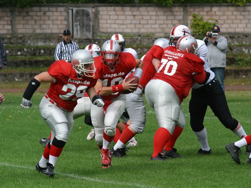 Das Auftaktspiel bestritten die Wetterau Bull gegen die Kassel Titans. Am heutigen Tag feierte nicht nur die Liga und die Teams, sondern auch fast alle Spielerinnen ihre Wettkampfpremiere. So wogte das erste Spiel lange Zeit hinterher. Zahlreiche gute Aktionen konnten die rund 300 Zuschauer bewundern, aber kein Team konnte einen Drive konsequent zu Ende bringen. Zu groß war am Anfang die Nervosität. Am Ende ging das Spiel 0:0 unentschieden aus.