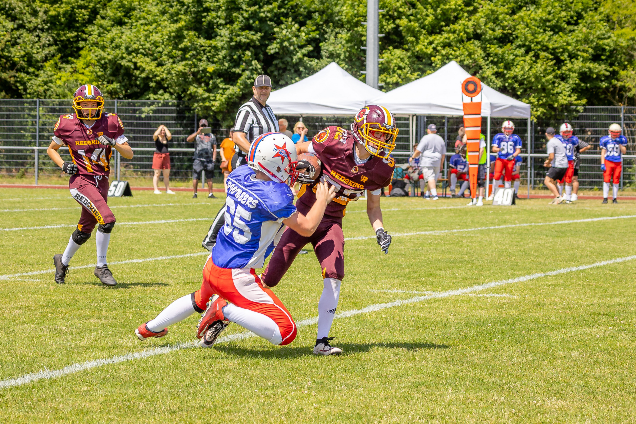 Im letzten Spiel musste Mannebach gegen die frischen, hoch motivierten Wetterau Bulls spielen. Das Spiel war, so wie das ganze Turnier sehr ausgeglichen. Jedes Team hatte mal das Momentum auf seiner Seite. Aber die Punkte erzielten diesmal die Bulls. Einem Lauf zum Touchdown in der ersten Halbzeit folgte ein weiterer in der zweiten Halbzeit. Am Ende gewannen die Bulls 12:0. Dafür wurden sie von dem heimischen Publikum gefeiert.