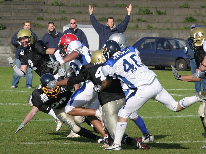 Das Auftaktspiel bestritten die Wetterau Bull gegen die Kassel Titans. Am heutigen Tag feierte nicht nur die Liga und die Teams, sondern auch fast alle Spielerinnen ihre Wettkampfpremiere. So wogte das erste Spiel lange Zeit hinterher. Zahlreiche gute Aktionen konnten die rund 300 Zuschauer bewundern, aber kein Team konnte einen Drive konsequent zu Ende bringen. Zu groß war am Anfang die Nervosität. Am Ende ging das Spiel 0:0 unentschieden aus.